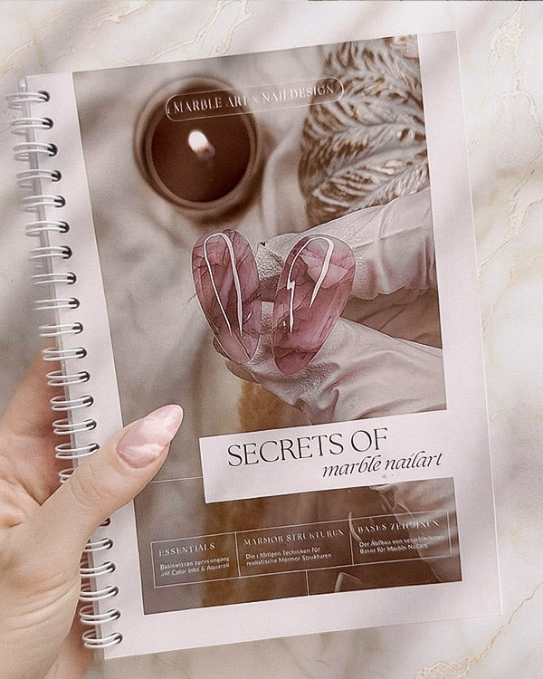 100 Seiten voll mit allem, was du wissen musst, um tolle Marmor Nailart zu lernen - mit Anleitungen, Vorlagen, Produktinfos, Tipps uvm.!