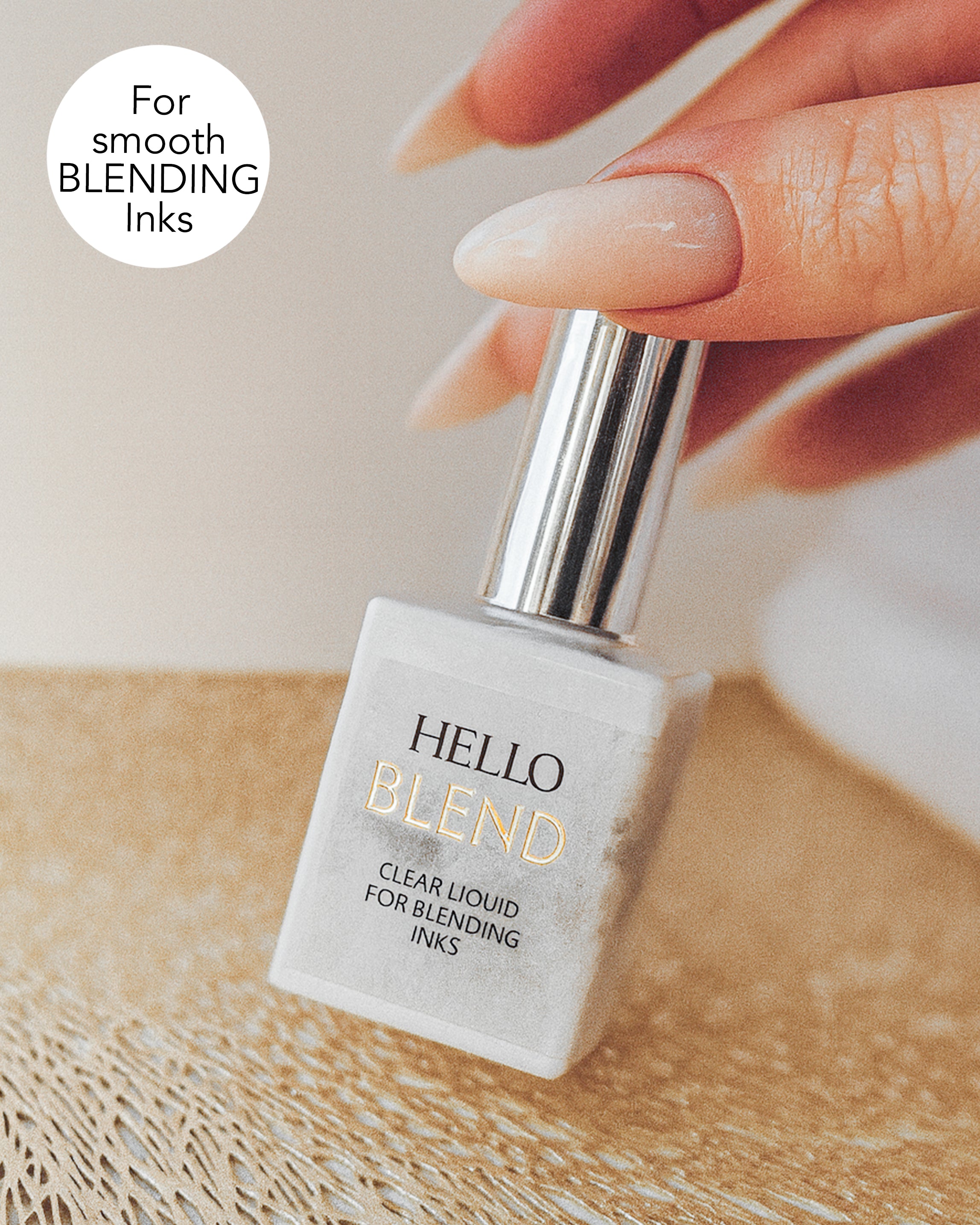 Hello Blend ist perfekt für das Arbeiten mit deinen Inks auf matten und glossy Untergründen. Er löst die Inks vom Untergrund und du kannst so tolle Marmor Effekte erzielen.